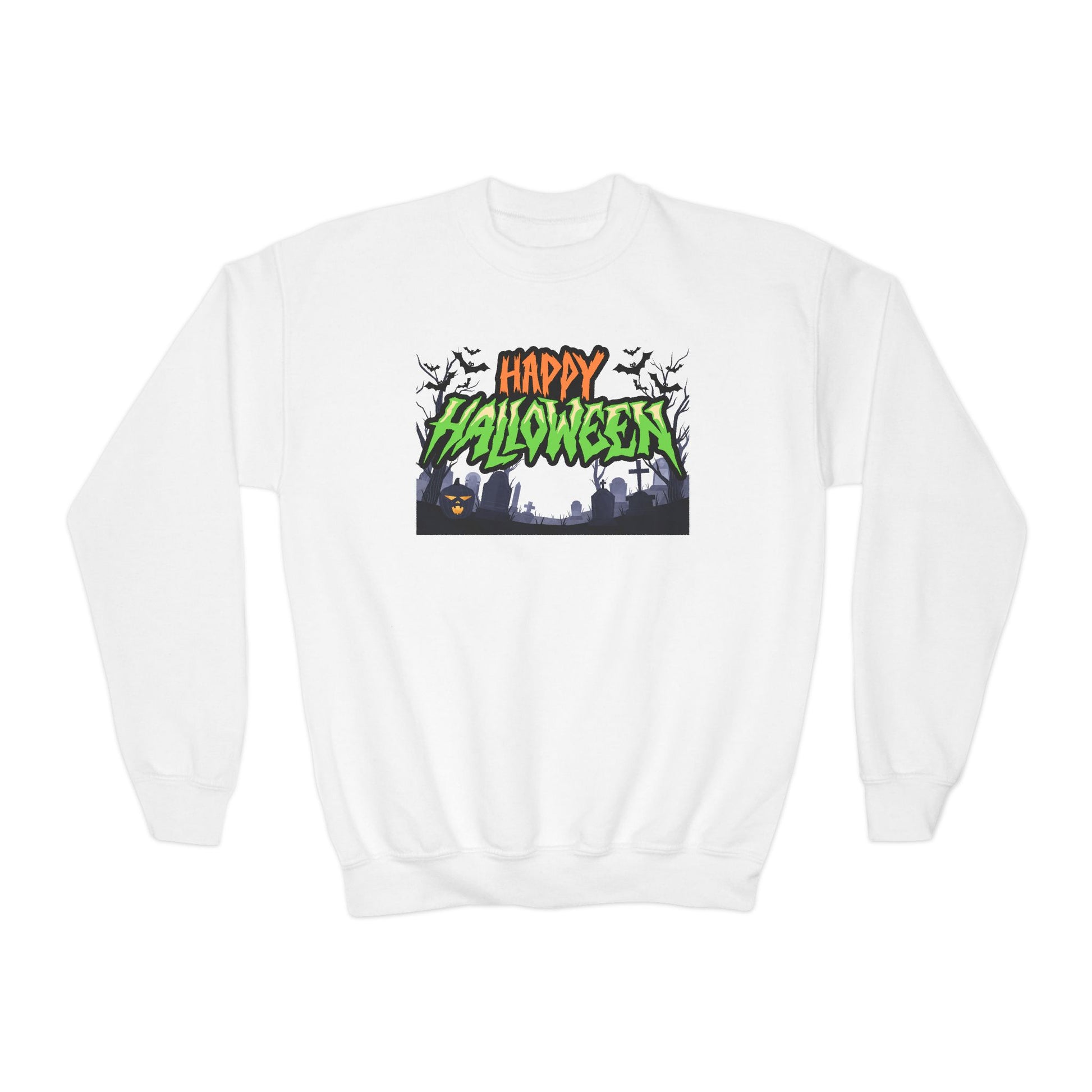 Happy Halloween Youth Crewneck Sweatshirt, Cute Halloween Gift, Spooky Sweatshirt, Fall Fashion, Kids Halloween Apparel
