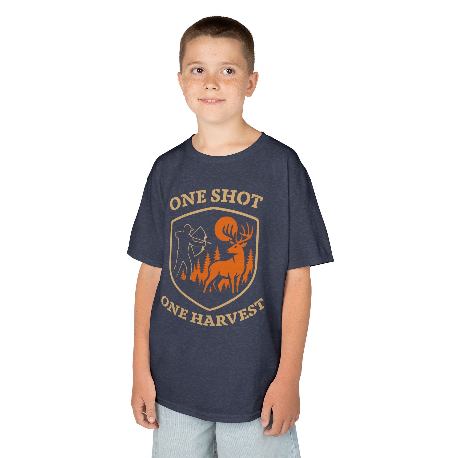 One Shot One Harvest Youth Unisex T-Shirt | Outdoor Adventure Shirt, Gifts for Young Hunters, Nature Lover Apparel