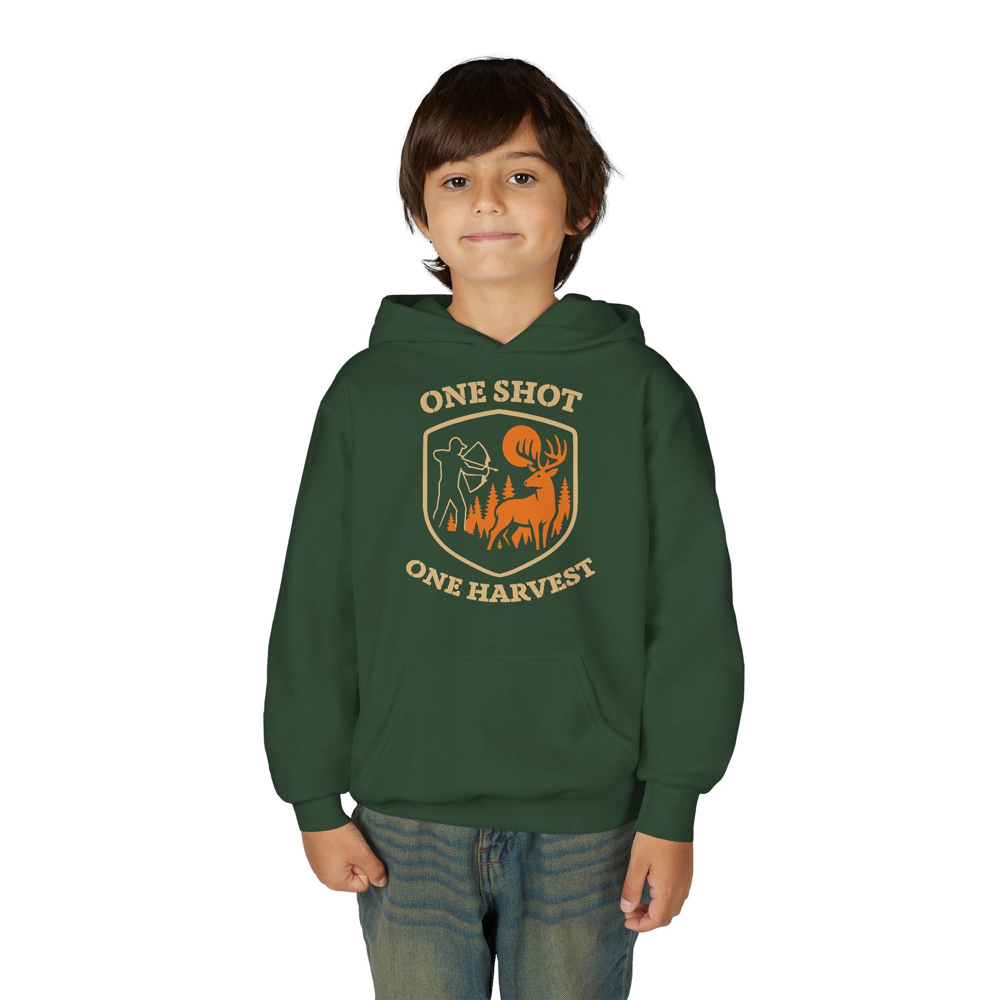 One Shot One Harvest Youth Unisex Hoodie | Outdoor Gift for Kids and Teens, Fall Fashion for Kids, Perfect for Hunter
