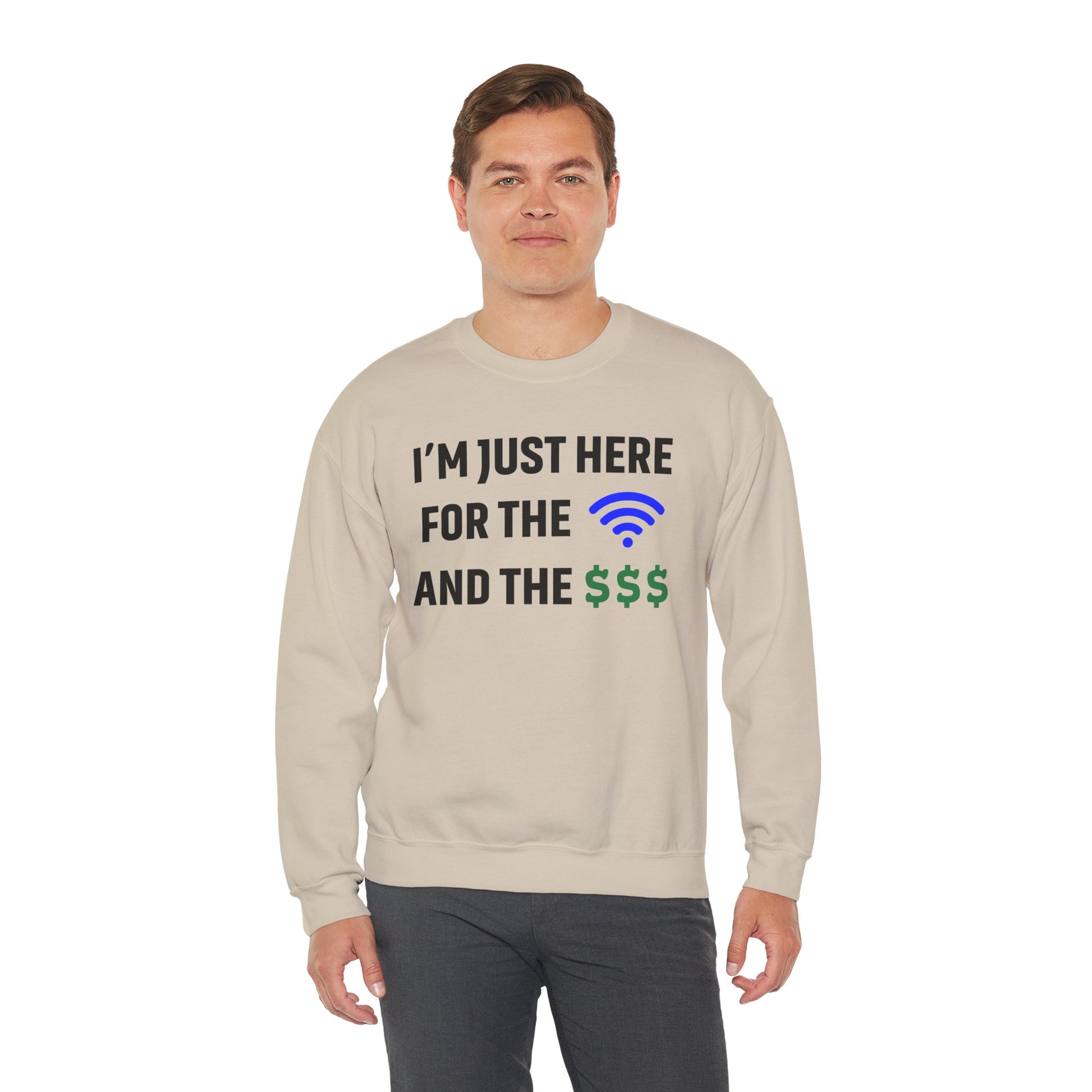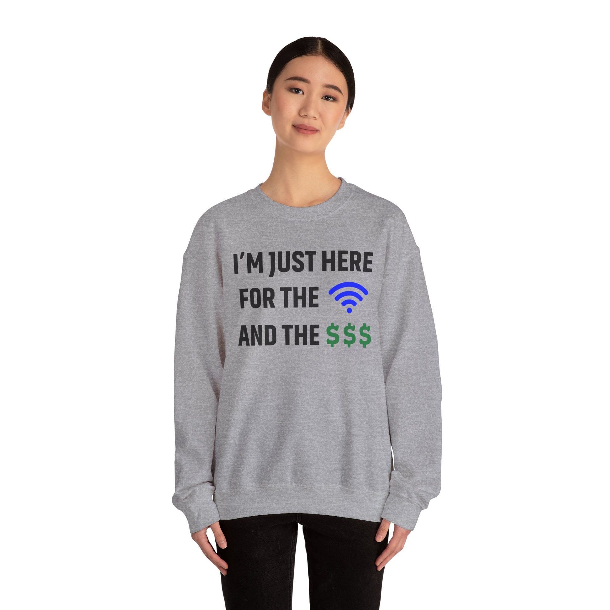 I'm Just Here For The Wi-Fi And Paycheck Unisex Sweatshirt | Funny Sweatshirt For Meetings, Office Attire, Great Gift Idea