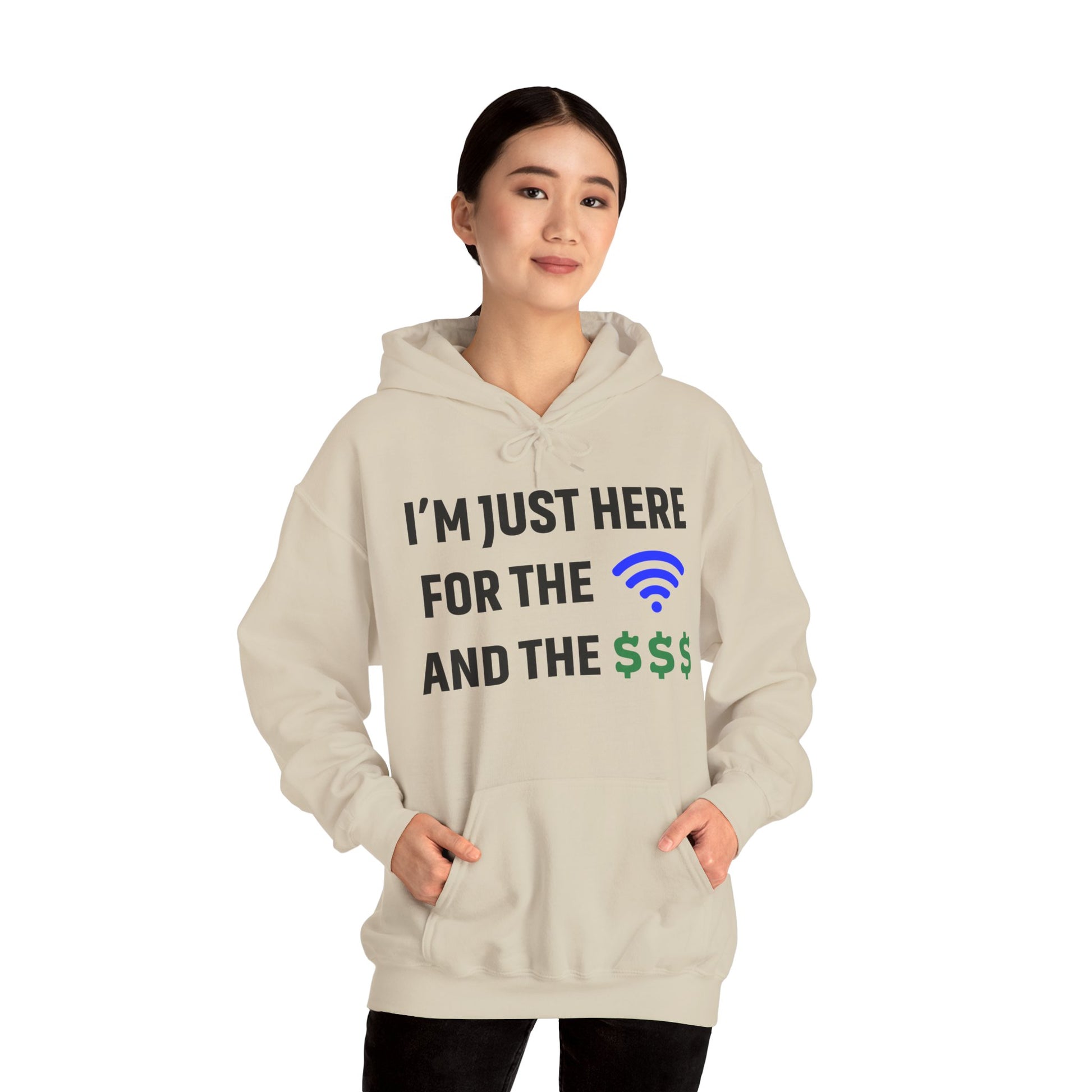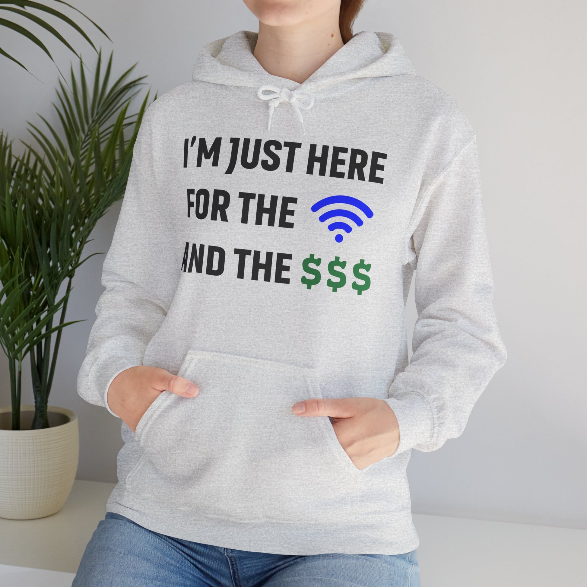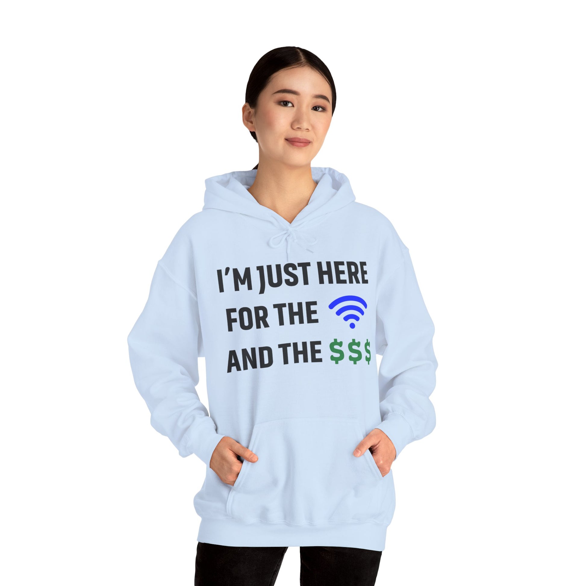 I'm Just Here For The Wi-Fi And Paycheck Unisex Hoodie | Relaxed Style Sweatshirt, Casual Wear, Gift for Coworker, Office Apparel