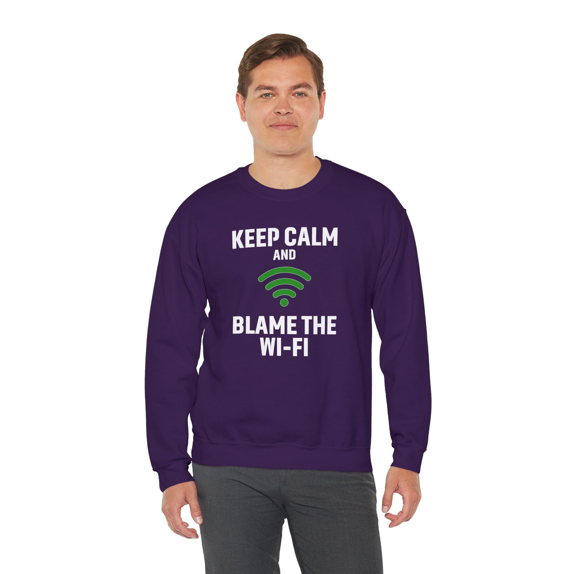 Keep Calm Blame the Wi-Fi Crewneck Sweatshirt | Funny Sweatshirt, Gift for Tech Lovers, Cozy Sweater for Home, Office Gift