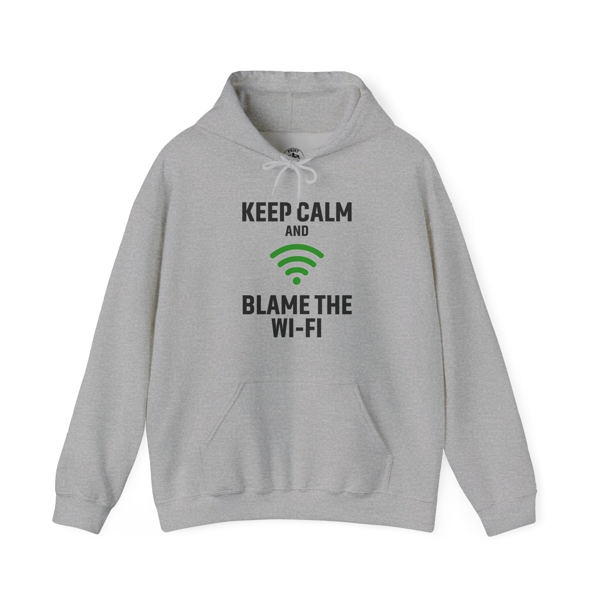 Keep Calm Blame the Wi-Fi Hoodie: | Cozy Sweatshirt, Tech Humor Apparel, Office Gift, Casual Wear