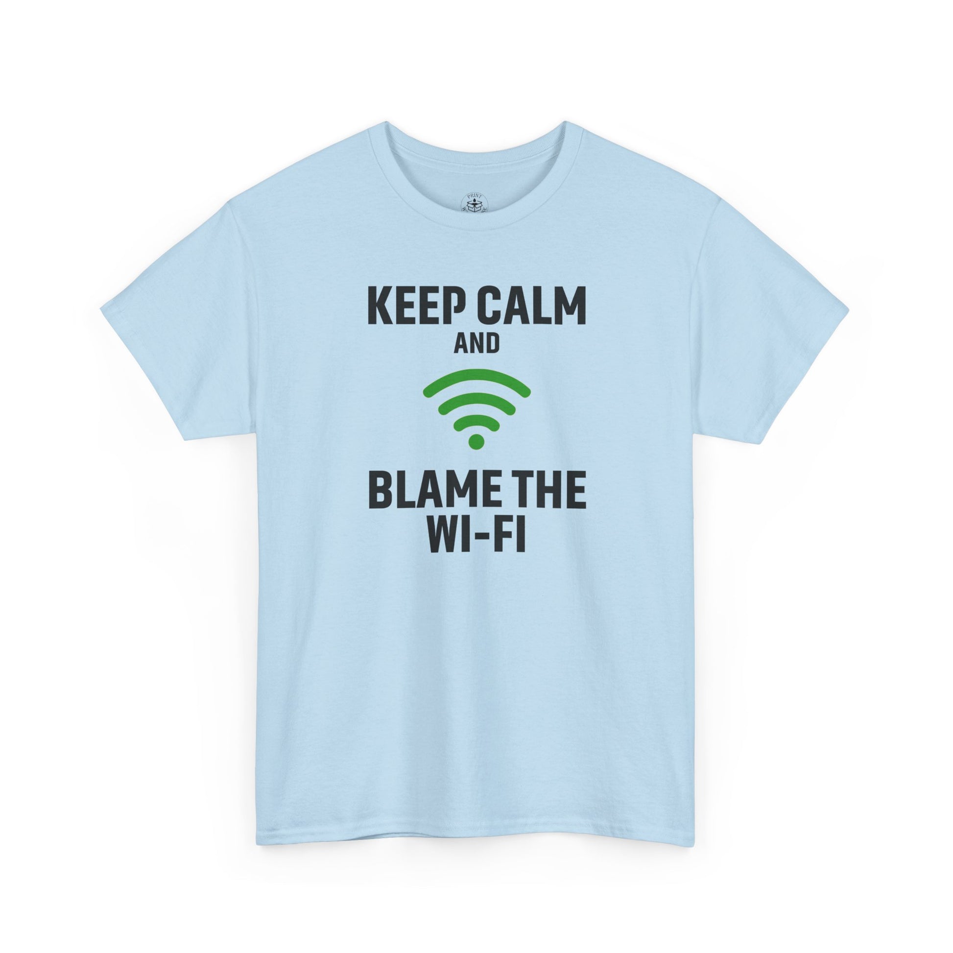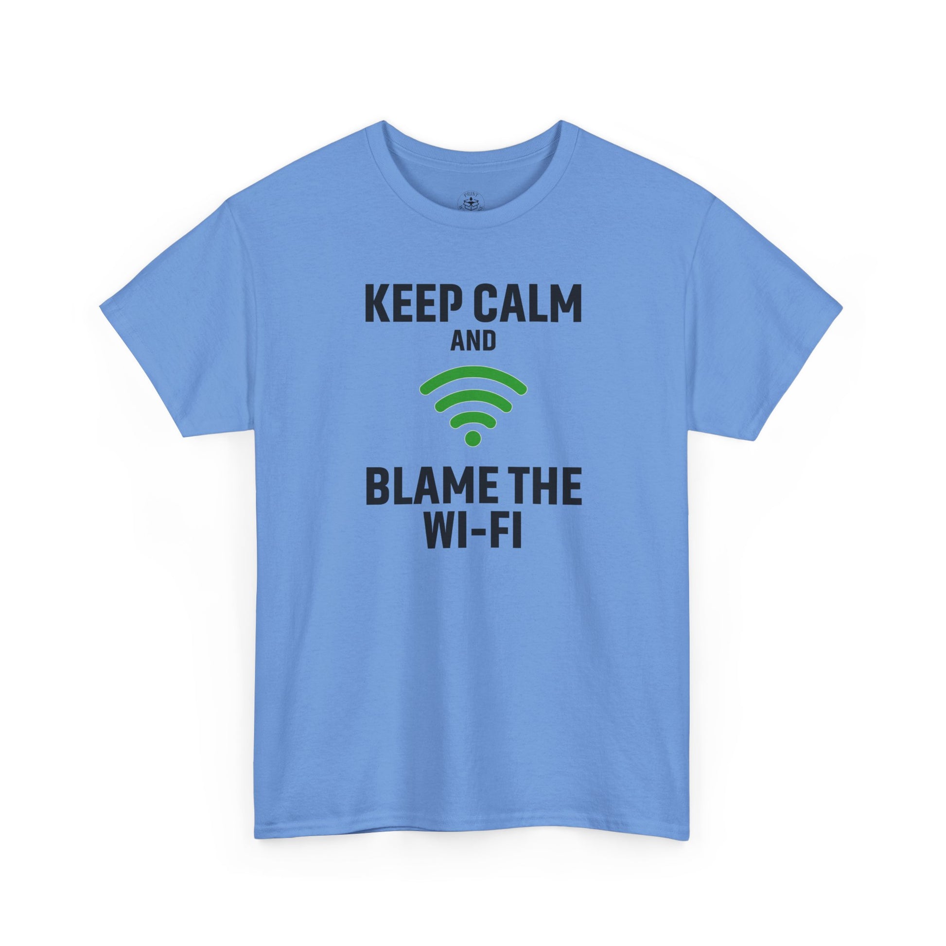 Keep Calm Blame the Wi-Fi Tee | Unisex Heavy Cotton Shirt for Tech Lovers, Funny Office Gift, Internet Humor Apparel, Casual Wear