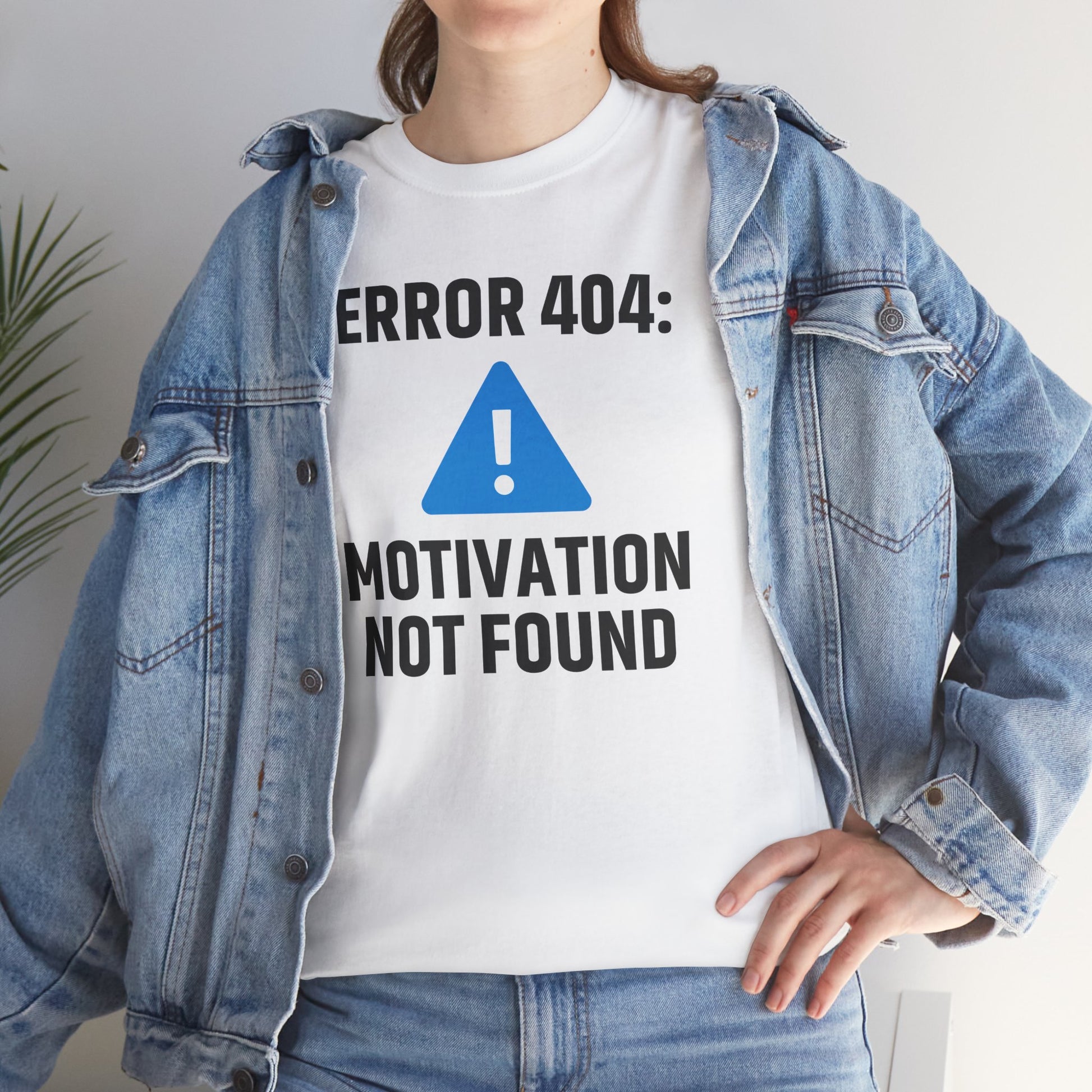 Error 404 Motivation Not Found Unisex T-Shirt | Funny Graphic Tee, Gift for Tech Lovers, Quirky Humor Outfit, Office Gift
