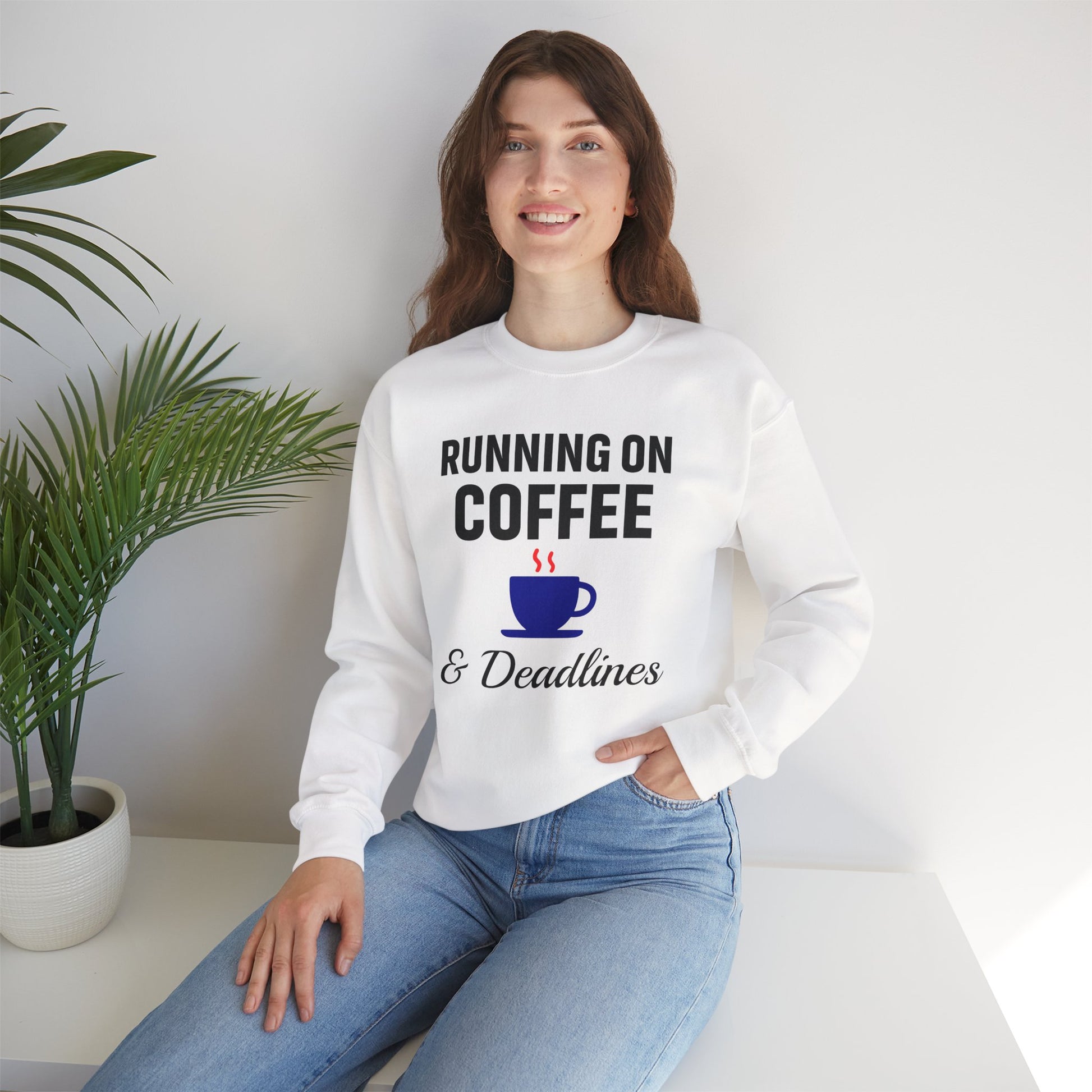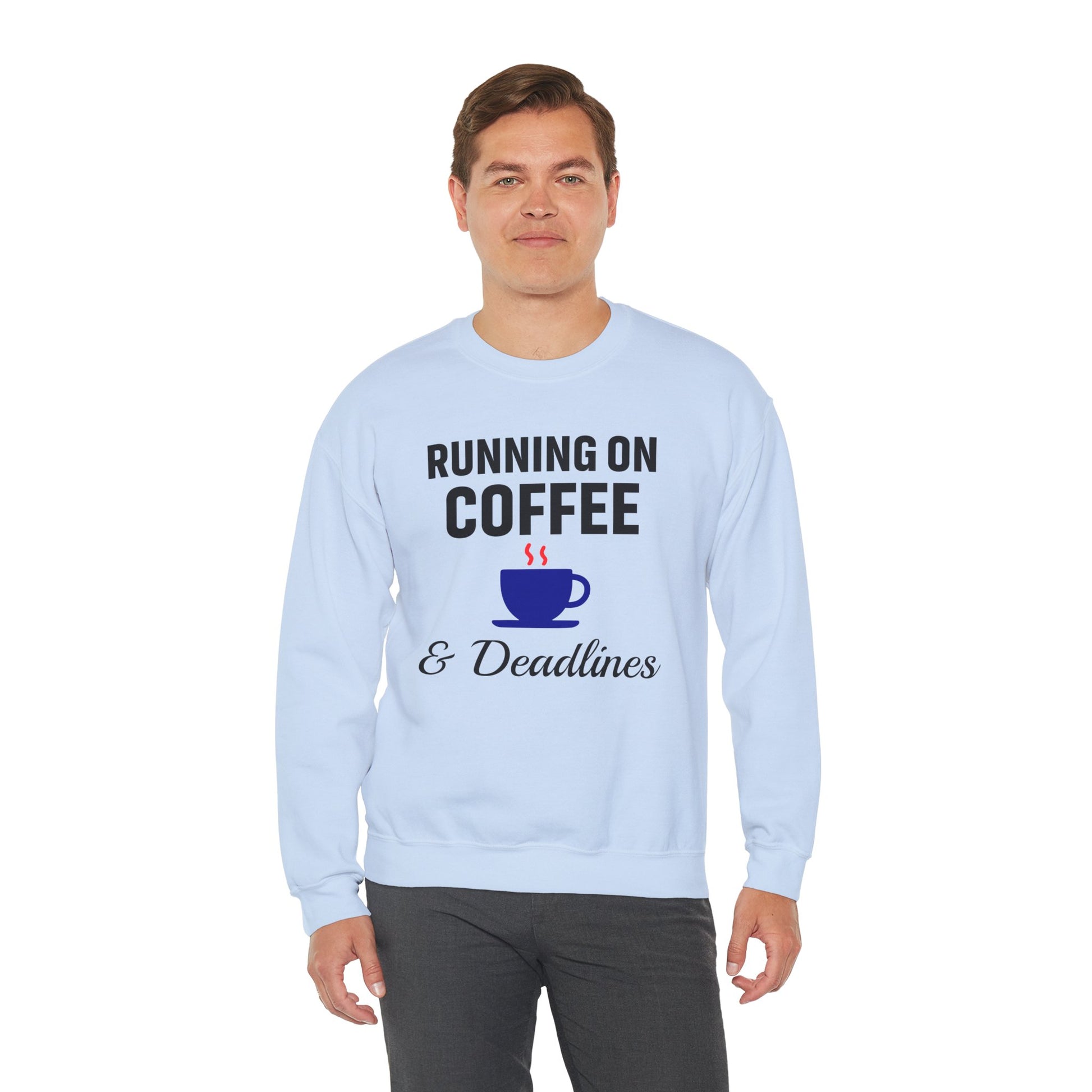 Running On Coffee And Deadlines Sweatshirt | Perfect Gift for Coffee Lovers, Great Gift for Coworker, Office Apparel
