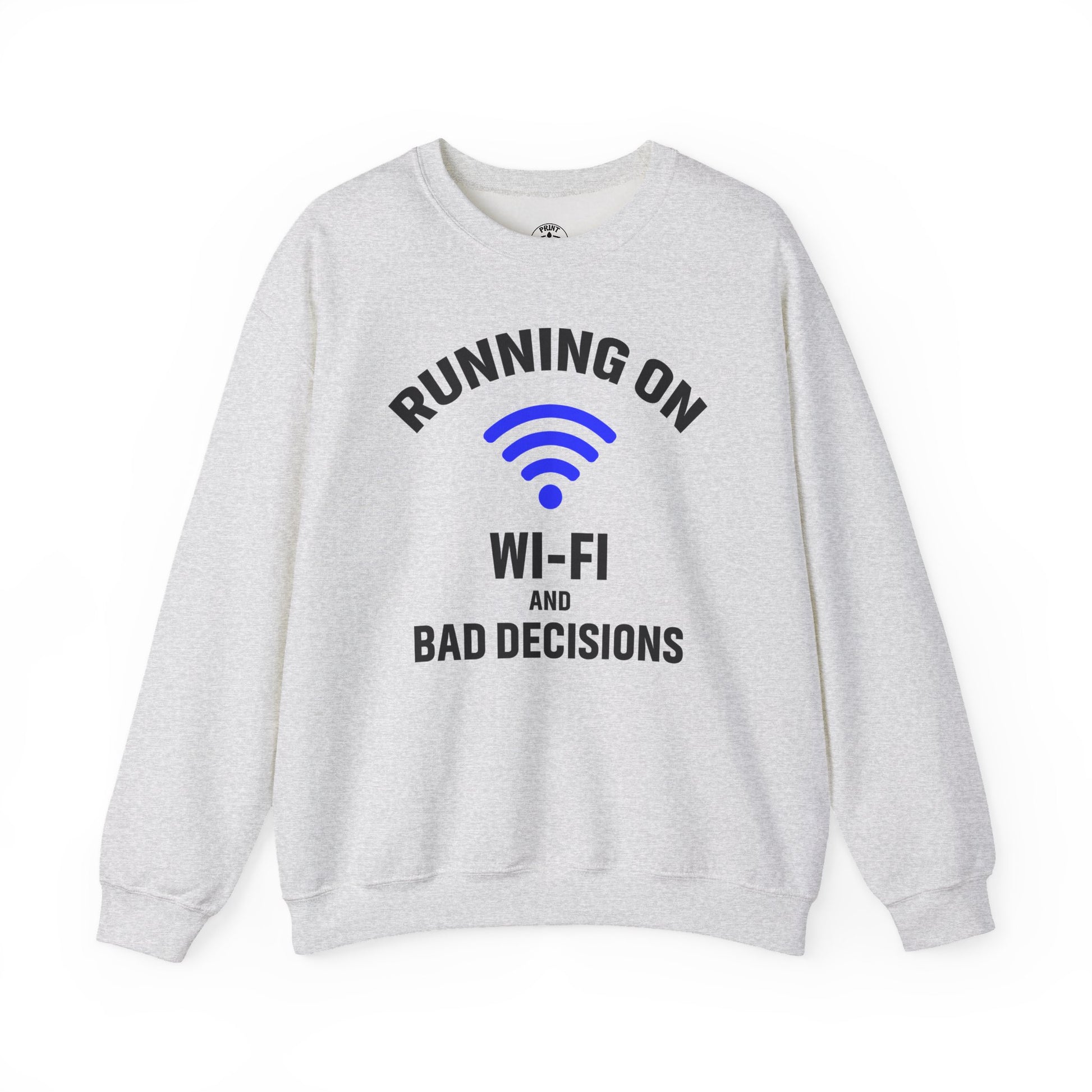 Running On Wi-Fi And Bad Decisions Unisex Sweatshirt | Funny Gift for Tech Lovers, Students, Coworker, Casual Wear