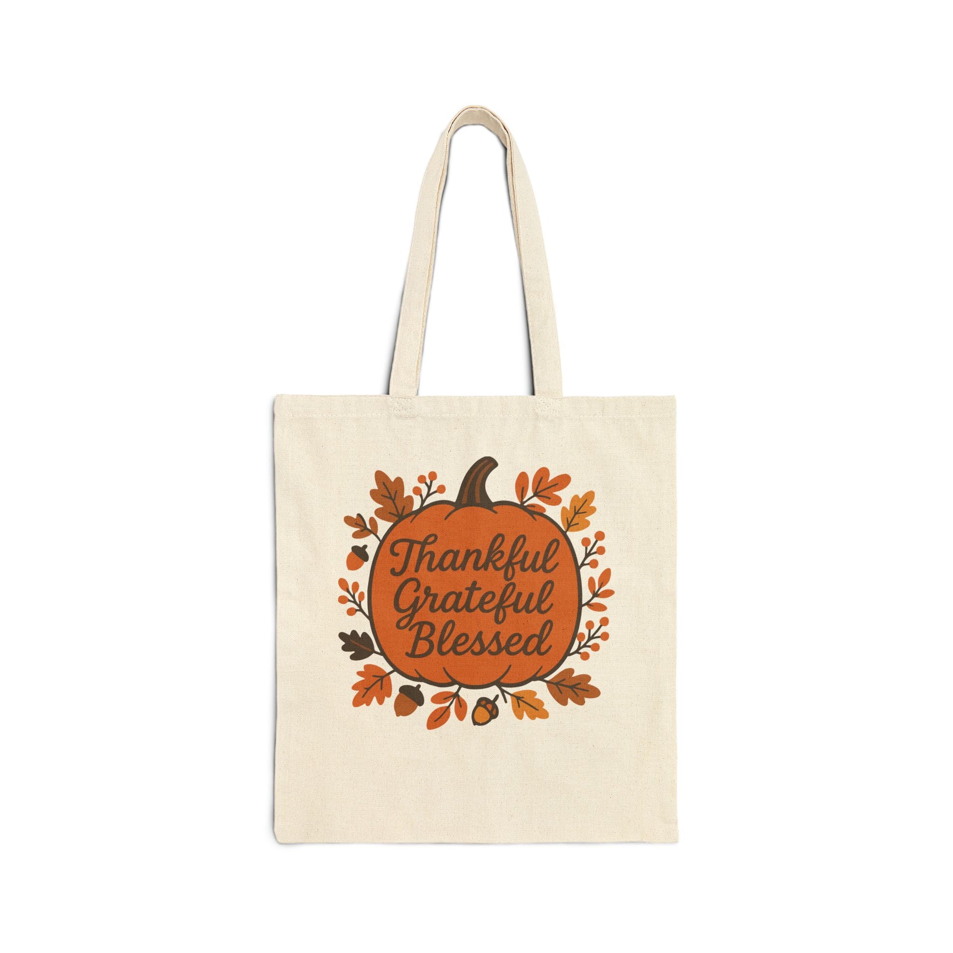 Thankful Grateful Blessed Cotton Canvas Tote Bag, Fall Tote, Autumn Gift, Thanksgiving Shopping Bag, Eco-Friendly Reusable Bag