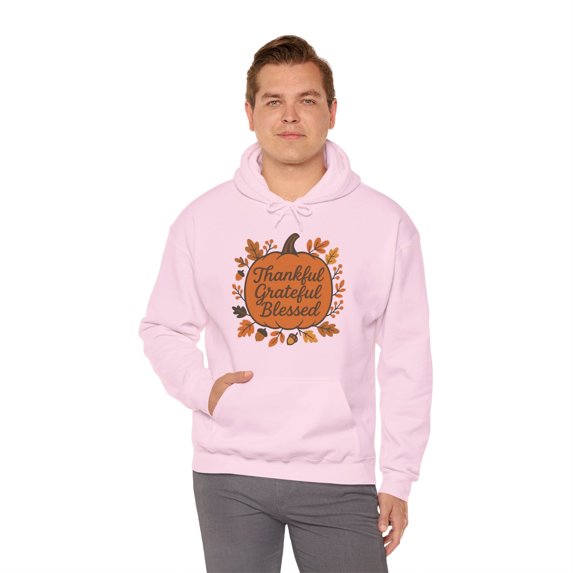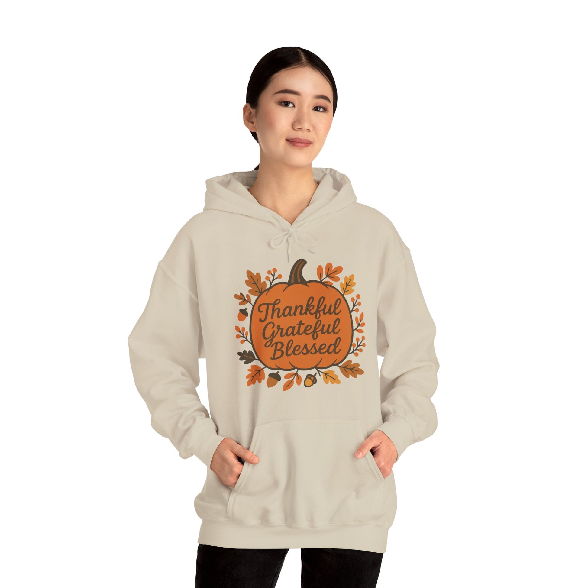 Thankful Grateful Blessed Unisex Hoodie | Cozy Fall Sweatshirt, Autumn Apparel, Thanksgiving Gift, Seasonal Comfort