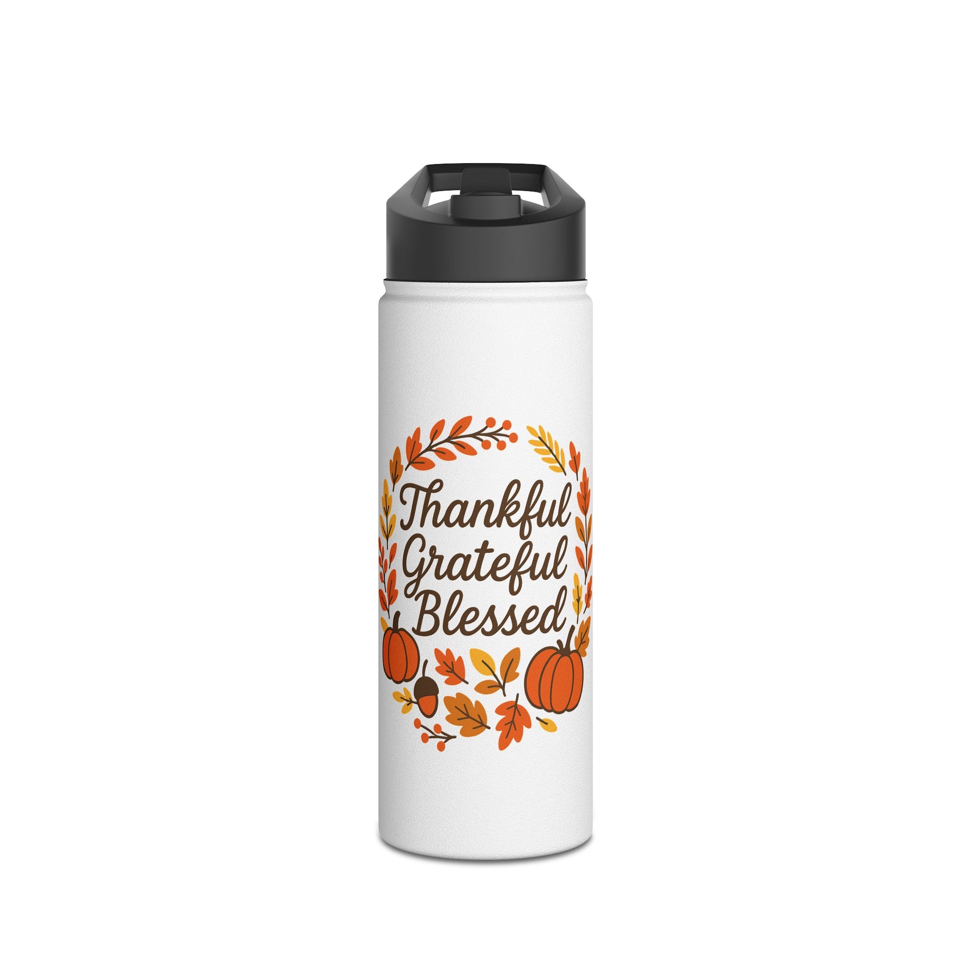 Thankful Grateful Blessed Stainless Steel Water Bottle - Fall Autumn Hydration Gift, Travel Mug, Reusable Drinkware, Gift for Friends