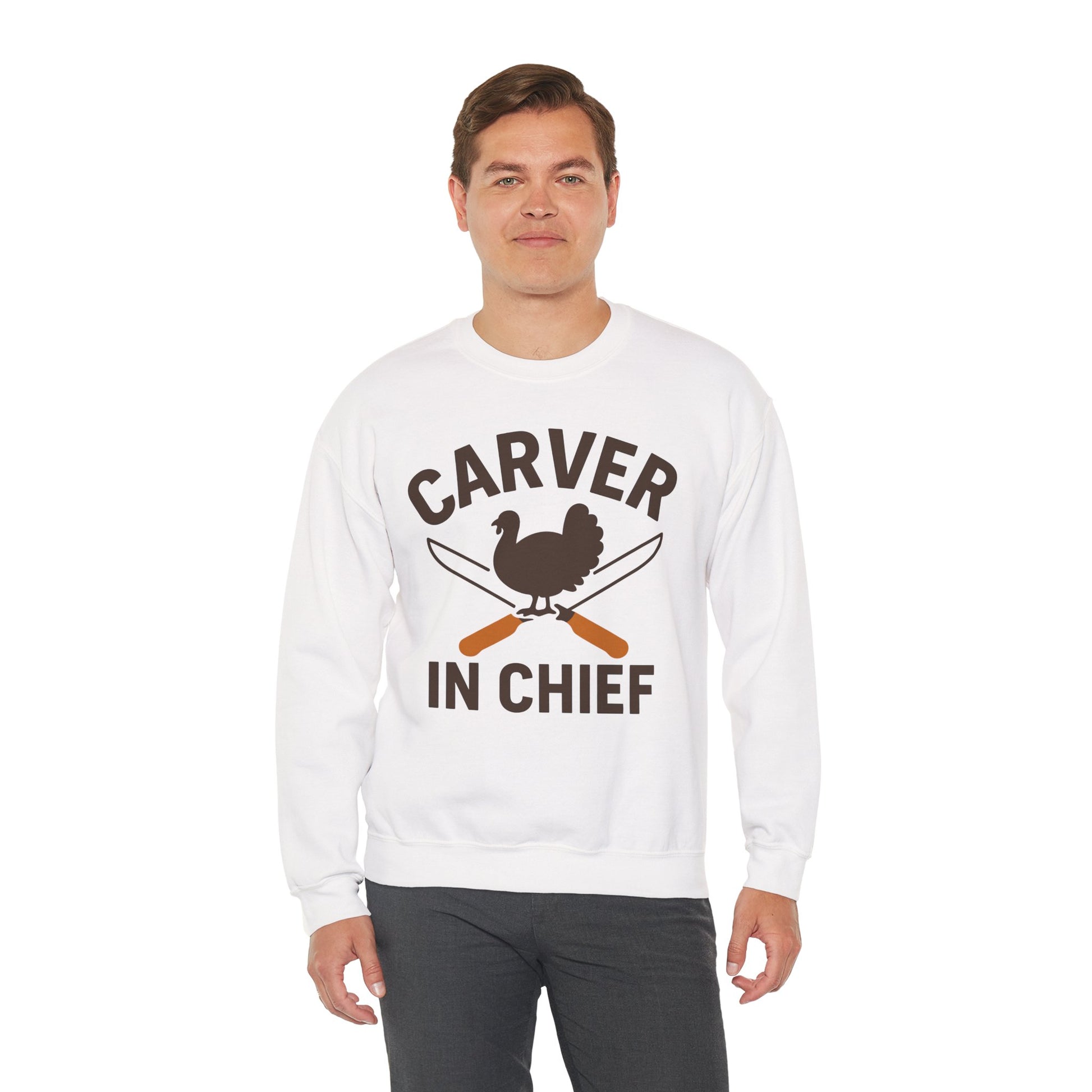Carver In Chief Unisex Sweatshirt | Funny Thanksgiving Gift, Crewneck, Holiday Apparel, Family Gathering Outfit