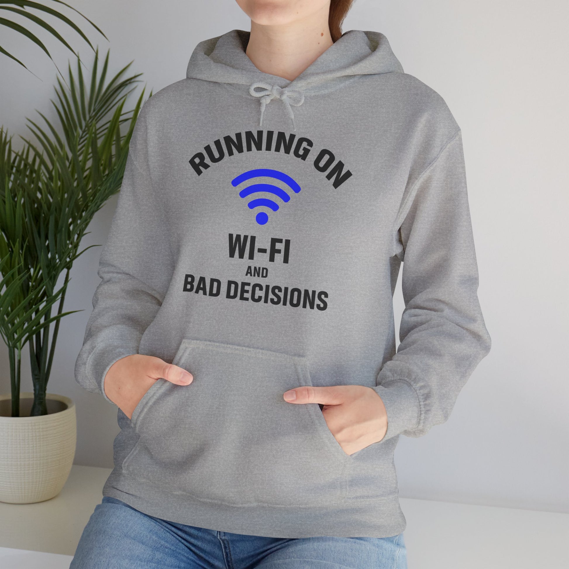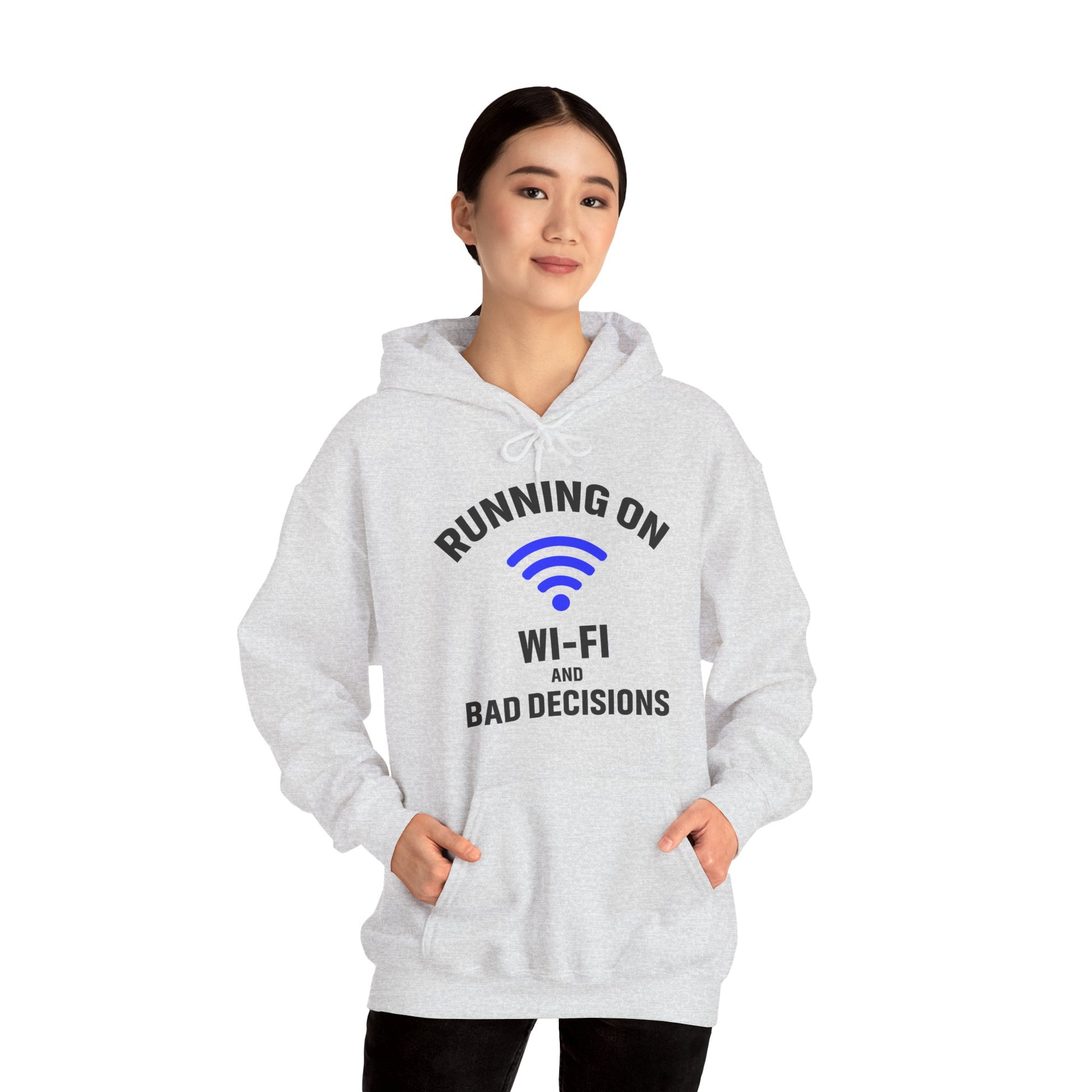 Running On Wi-Fi And Bad Decisions Unisex Hoodie | Fun Sweatshirt for Tech Lovers, Gift for College Students, Tech Humor Gift
